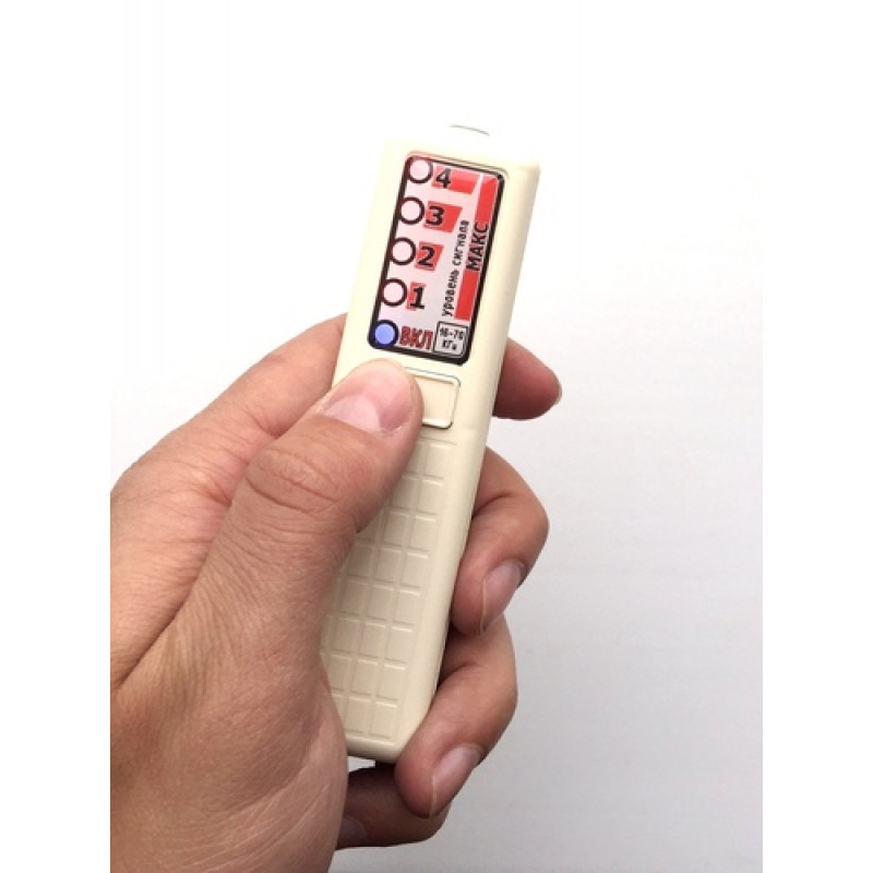 С расстояния 1 метр индикатор направить приемником на источник излучения ультразвука и по шкале красных светодиодов определить уровень: